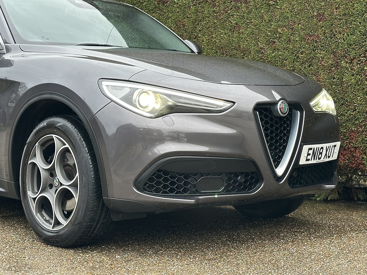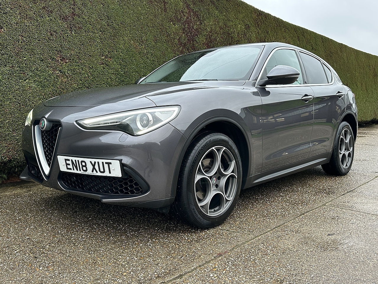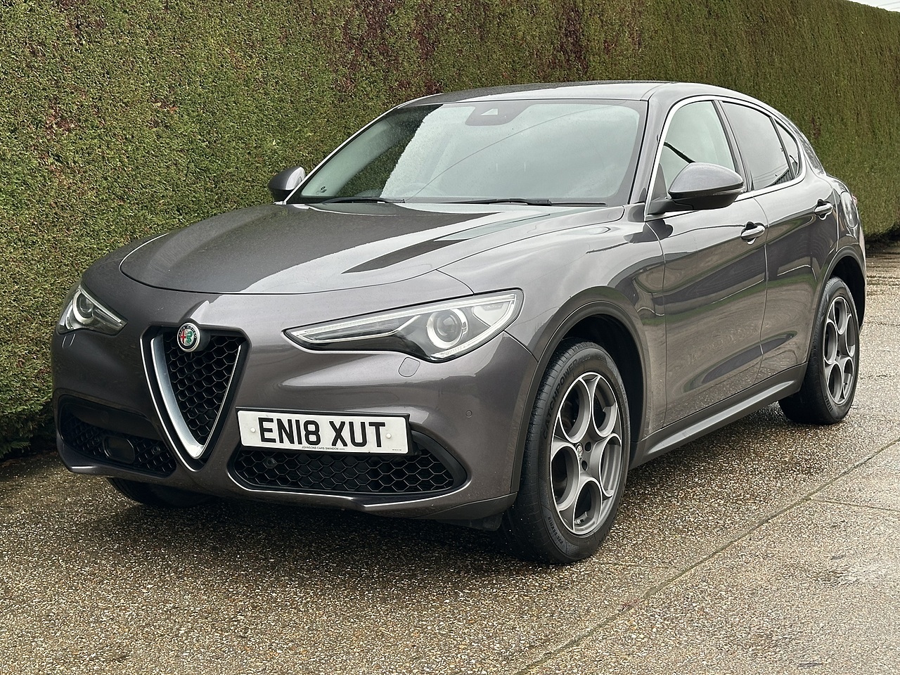 9.9% APR Anailable with No Admin Fees on This Stunning 2018 Alfa Romeo Stelvio T Speciale in Vesuvio Grey with Black Leather heated Seats. This SUV is in excellent condition with a mileage of 74158. Powered by a 2.0 petrol engine, this Alfa Romeo delivers a powerful 276 BHP with a top speed of 143 and an acceleration of 5.7. With a fuel efficiency of 40.4 MPG, this Stelvio is both stylish and practical.